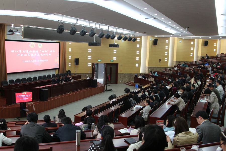 416下午,江苏省社科联副主席张颢瀚教授应邀来我校,作了题为《深入学习贯彻全国两会精神,开创江苏改革发展新局面》的专题辅导报告。报告会由校党委陈涤平书记主持,校领导、全体中层干部、辅导员、两课教师、组织员、党支部书记,以及各级人大代表、政协委员、各民主党派负责人参加了报告会。