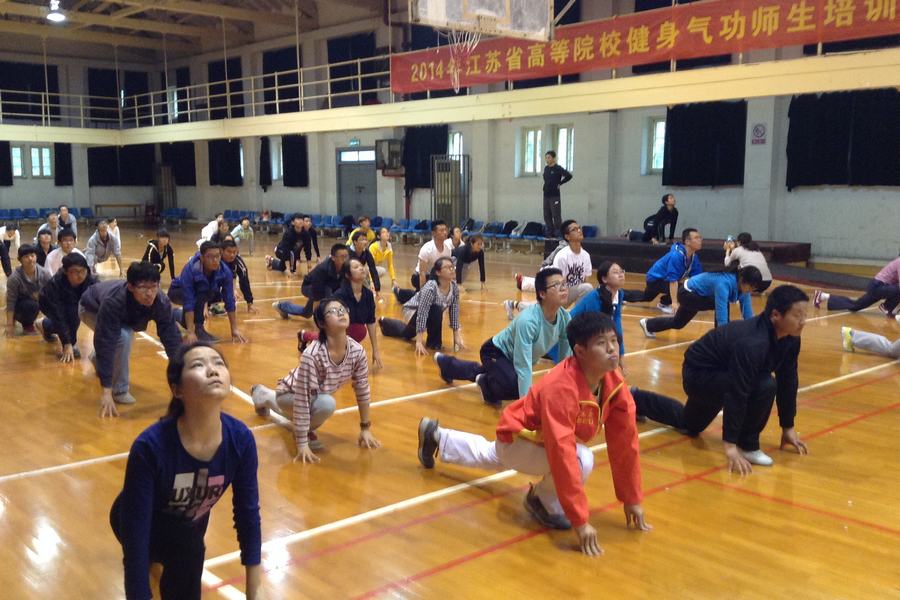412414,第二临床医学院养心社8名社员参加了由江苏省体育局举办的2014年江苏省高等院校健身气功培训班。本次培训由东南大学承办,培训地点位于东南大学四牌楼校区体育馆。