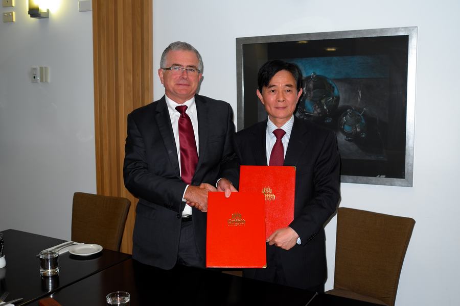 吴勉华校长与澳大利亚格里菲斯大学校长Ian O`Conner教授签署协议