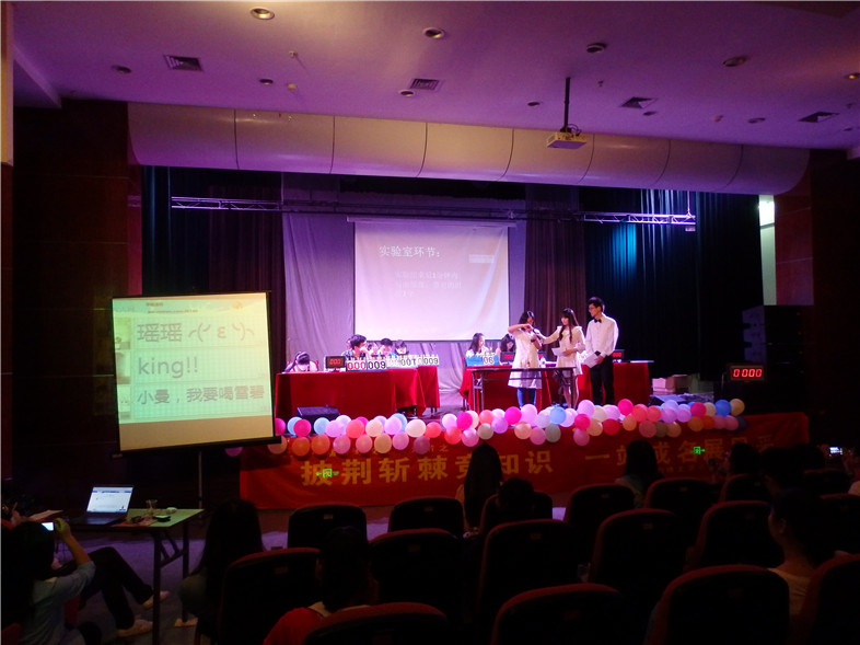 整场活动由三关答题环节、内经选诵环节、实验环节和最后冲刺环节组成,共有六组选手参赛。三关答题环节分别设有简单题、中等题和较难题三种不同难度等级,题目涉及医学、化学、地理等多个方面,对选手的综合素质要求较高。在第一关与第二关之间的“可乐变雪碧”实验环节中,利用碘的氧化性与维生素C还原性的原理,黑色的可乐最后变成了清澈的雪碧,小小的实验不仅帮助大家回顾了基本的化学常识,还很好地活跃了活动的氛围。在内经选背环节,选手抢答十分热烈,出众的表现引得观众连连称赞。为了缓解一下紧张的气氛,现场还进行了两次抽奖活动,共有三名幸运观众获得了小礼品。第三关答题环节名为“放手一搏”,本环节题目难度大,比赛也由此进入高潮,有的选手争取稳中求胜,选择分值较小的题,而有的选手则喜欢冒险,选择了分值较大的题。随着比赛的逐步展开,各组选手之间的差异也越来越明显,最终,第六、三、一组胜出,分别获得了冠亚季军。比赛最后还有终极冲刺环节,本关为单独的抢分环节,得分不与前几关叠加,最终由第三组博得头筹。