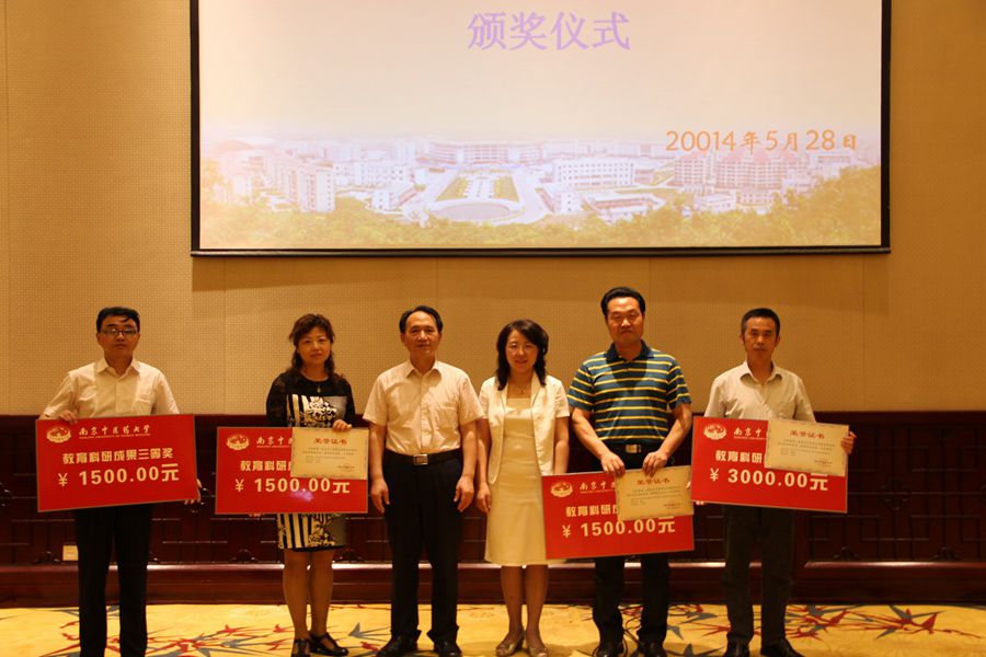 教务处徐俊良副处长对2013年的医学毕业实习工作进行了全面总结,对实习检查中发现的问题进行了深入分析,同时针对性地提出了解决问题的建议以及未来学校的工作计划。连云港附院等四家医院的代表分别从开展临床教学工作水平评估、强化师资培训、提高临床教师教学意识、规范日常教学管理等多个角度进行了大会交流,其他医院的参会代表也结合临床带教实际进行了热烈的发言讨论,对临床教学工作的开展提出了思考和建议。此外,科技处刘跃光处长和高等教学评估中心的文庠主任还分别就附属医院科技协作网络建设、附属医院临床教学工作水平评估以及新一轮临床教改课题的发布做了详细介绍。会议还对首届“中医励耘奖”进行了评选,初步产生了蒋卫民等19位励耘奖获得者,并为第二届“教育科学研究成果奖”进行了颁奖。