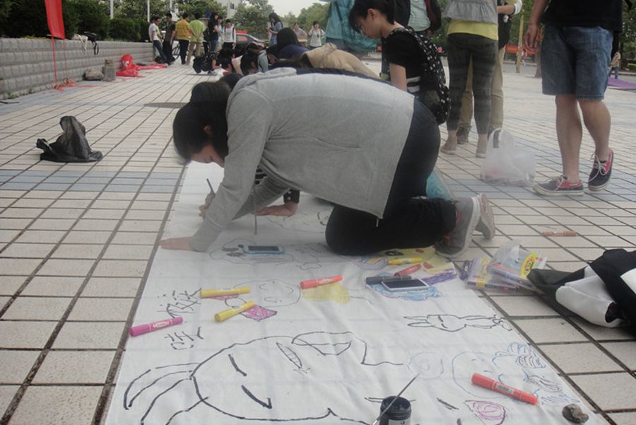 长卷上给每个院都划分了一定的区域,同时还留了一部分给路过的同学画下祝福。同学们分工合作,密切配合,认真地在画卷上画着自己心中的南中医。画卷上水墨画、油彩画各式各样,梅兰竹菊代表着中医学子的隐忍,中药植物体现了南中医的特色,不染尘俗的莲花象征着中医的质朴,可爱的卡通人物体现了同学们的蓬勃朝气。最后,在各院同学们的努力下,画卷完美收工。