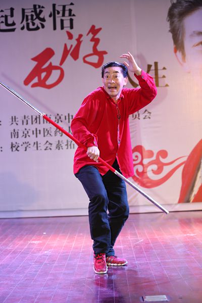 章金莱老师一身红装,伴随着同学们雷鸣般的掌声进入小剧场。“大师兄来看你们了!”章老师打招呼的方式简洁而又亲切。演讲伊始,章老师表达了对南京中医药大学六十周年校庆的祝福,他说自己的幸运数字是“六”字,自己又名叫六小龄童,今年是南中医六十岁生日,他与南中医因“六”字结缘,衷心祝福南中医的明天更加辉煌!