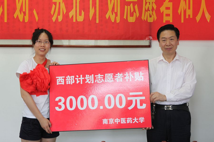 陈涤平书记代表学校向西部计划志愿者颁发奖金