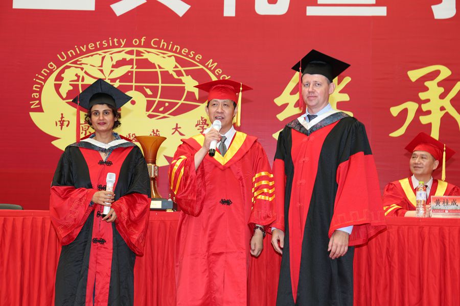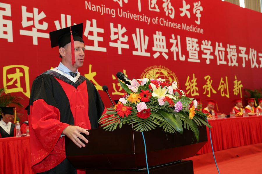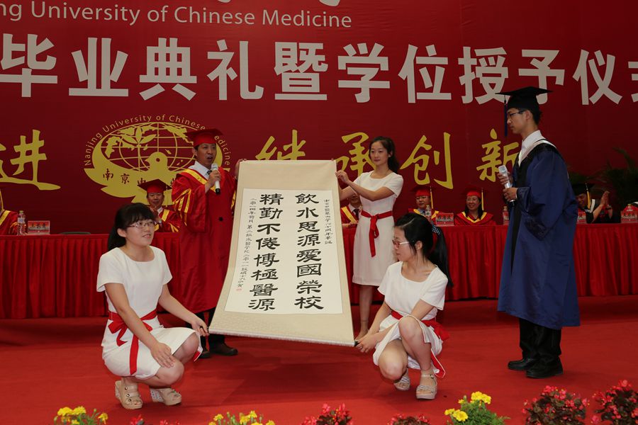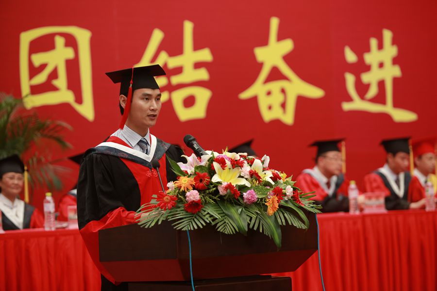 中医诊断学专业博士研究生杨涛同学和针灸推拿学专业博士研究生萨沙同学分别代表2014届境内外研究生在仪式上发言。他们饱含深情地表达了对中医药的执着与热爱、对导师和母校的感激与依恋;满怀信心地表达了全体毕业研究生弘扬中医药文化、创新中医药技术、发展中医药事业的坚定决心。