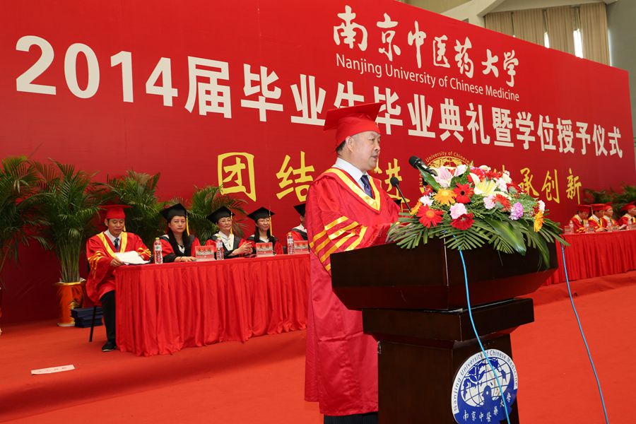 仪式在庄严嘹亮的国歌声正式开始。副校长、校学位评定委员会副主席段金廒教授宣读了南京中医药大学关于授予2014届毕业研究生博士、硕士学位的决定。本次毕业典礼暨学位授予仪式共向826名硕士研究生,147名博士研究生授予学位。
