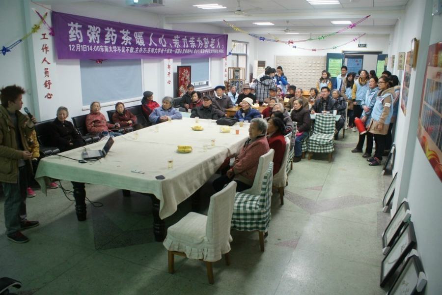 127下午,一场别开生面的“药粥药茶暖人心,亲力亲为慰(为)老人”活动在东南大学校友会堂一楼老干部处大厅举行。活动由我校经贸管理学院自强社与中药社联合承办,得到了东南大学老干部处和南京玄武区一家圆心灵保姆服务中心的大力支持,东南大学离休老干部及来自东大社区的20多位老人参加了这次旨在“关爱老人健康、普及中医养生”的爱心公益活动。