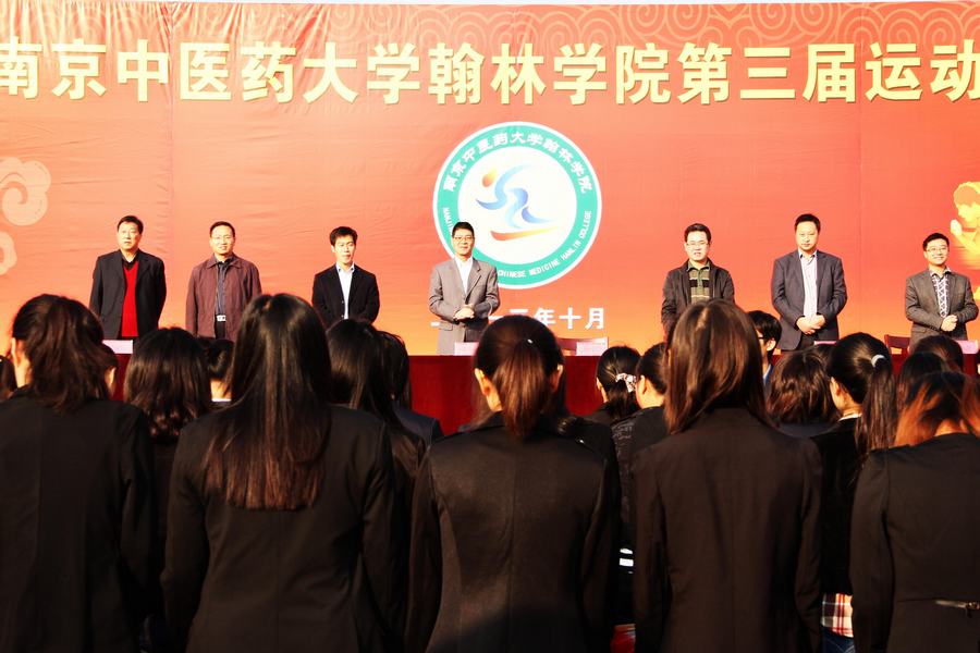 凤城秋韵、碧空万里。1026日上午800,南京中医药大学翰林学院2013年第三届田径运动会在学院操场拉开序幕。翰林学院党委书记唐传俭、常务副院长沈大庆、各部门负责人、体育教研室主任胡继顺及全院师生参加了开幕式。开幕式由翰林学院党委书记唐传俭主持。