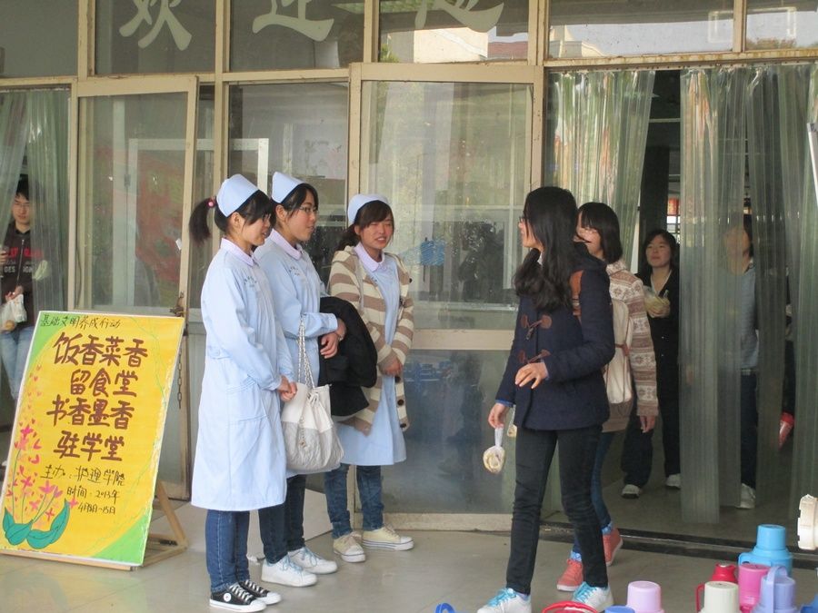 为响应学校号召,强化学生基础文明意识,提升学生整体综合素质,自48日起护理学院分团委、学生会发起了以“饭香留食堂 书香驻学堂”为主题的拒绝早餐进教室宣传倡导活动。通过前期广泛动员,来自各个学院的志愿者们也积极参与了此次活动。