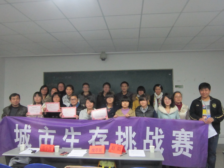 2012年11月22日,在B11-212举行了第三届城市生存挑战赛的分享会。各组成员通过ppt分享了此次活动的感悟与体会。选手们纷纷表示活动带给他们的不仅是奉献和挑战,更多的则是关于未来的思索。只有未雨绸缪,提前体验谋生的技巧,接触现实社会,获得更多生存的能力,才能翱翔于多变的社会,顺应时代的潮流。通过生存挑战大赛的初赛、复赛、决赛以及团队展示环节评选出了本次大赛的一二三等奖和优秀个人奖。