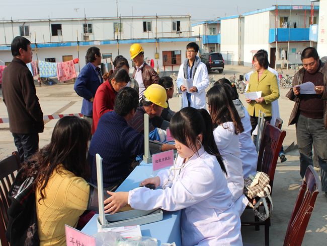 17日中午12:30,志愿者们准时在校门口集合,组队骑车前往南京市鼓楼医院仙林分院建设工地。到达目的地后,志愿者们便开始了紧张的准备工作。参加此次义诊的志愿者们义诊经验丰富,技术娴熟,能够进行相对专业的非药物疗法。本次活动场地分室外和室内两部分,拔火罐、艾灸、推拿等传统非药物疗法安排在工地会议室内,血压、健康宣教安排在室外。下午1点,活动正式开始,陆续有农民工及家属来到活动现场,量血压、推拿、拔火罐、艾灸、耳针、健康知识宣教各组有条不紊地展开工作。此次义诊活动不同以往,初次来到这个群体,看到农民工朋友们为了生活背井离乡,每天进行超大强度的劳动,他们吃苦耐劳、坚忍不拔的精神感动着每一位志愿者,大家不怕脏、不怕累,细致耐心地对待每一位来诊患者。闲聊中一位老伯的话让大家深受震撼:“为了省钱,平时有啥毛病也不愿休息去医院,便硬扛着,农民工几乎都这样,几乎都有腰背酸痛的毛病,你们这些孩子真是雪中送炭啊,欢迎你们常来!”
