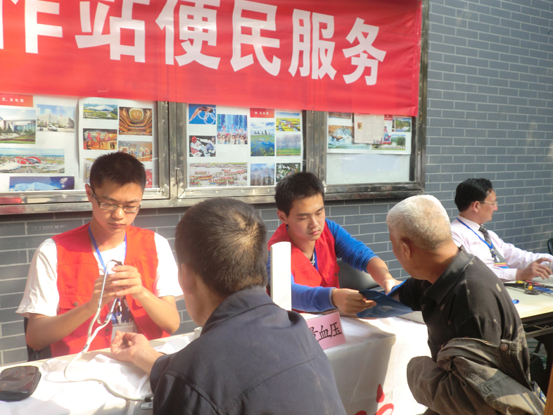 下午2点,志愿者们早早地来到了预定地点,为了保证活动能够顺利进行,大家都忙碌地准备着。3点左右,天气逐渐凉爽下来,居民区里的老人们陆续得出来活动。志愿服务桌前感兴趣的居民也越来越多,量血压的三位同学不仅细致的为社区居民们量血压,而且对于血压过高的居民询问相关情况并热心的给他们建议。推拿区域的人一直络绎不绝,两位同学细心询问他们的情况并使用不同的推拿手法,耐心的为居民们按摩,最后还因为双手过于累不得不轮流着服务。除此之外,同学们还为社区的老人们提供了刮痧,艾灸的志愿服务,大家娴熟的专业技能,热心的服务态度获得了前来的社区居民以及上级领导的一致认可。