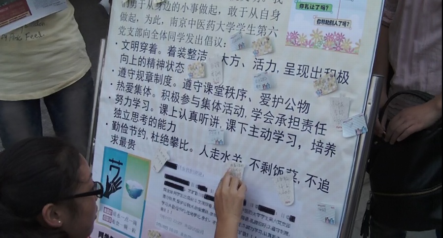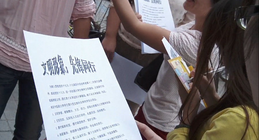 开学初党支部通过小组讨论的方式,讨论如何做好文明大学生编写倡议书的内容,用以制作展板和单页,并于9月份通过网络的方式在人人网、新浪微博、QQ空间上进行转发,扩大对外宣传。同时在国庆前后,通过展板和宣传单页的方式,宣传作为文明大学生,我们应该做什么、不应该做什么,活动取得了预期的效果。