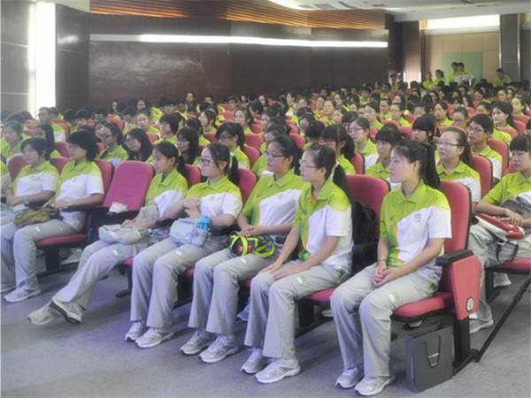 陈涤平书记发表了重要讲话,他代表学校向全体青奥会志愿者表示亲切的问候和衷心的感谢。他还表示,第二届青年奥林匹克运动会作为一项国际性赛事,我校志愿者要充分抓住机遇,发扬主人翁意识,弘扬志愿者精神,为青奥会多做贡献,展现出南京的靓丽形象,展现出当代大学生的青春风采,也展现出南中医学子的精神风貌。同时希望同学们在做好志愿服务之余,借助青奥会窗口,向国内外友人广泛宣传我校,展示我校中医药特色。陈书记也希望志愿者们积极表现,让青奥会的志愿服务经历在自己的人生中留下美好的回忆,书写瑰丽的篇章。