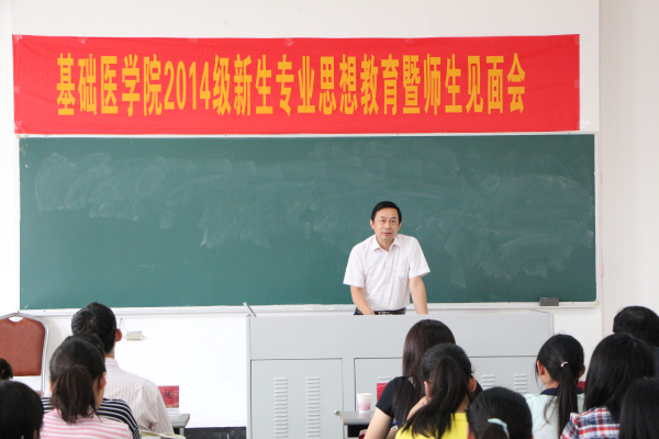 副校长孙志广教授参加了基础医学院的新生入学教育课。他首先对中西医临床专业的专业要求、发展前景作了深入浅出的讲解,使新生们对所学专业有了基本的认识。随后,孙校长从“扎实专业基础”、“培养学习兴趣”、“加强锻炼”、“调适心理”、“培养高尚品德”五个方面向大家详细阐述了“应该做一名怎样的大学生”和“如何在大学生活“。他同时对新生提出了殷切的希望:希望同学们好好学习、善于学习,成为有理想、有抱负的社会栋梁之才。