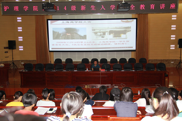 9月2日上午,保卫处马强老师应邀为护理学院2014级新生作安全教育专题讲座。马老师以通俗易懂的语言、生动鲜活的案例,从治安、消防和交通等三大方面,深入浅的为同学们介绍以诈骗、盗窃、扒窃、火灾、人身伤害为主体的多发性校园常见案例,以及各类交通事故的安全知识、预防手段及应对策略,告诉同学们如何加强自身防范和避免受到伤害。