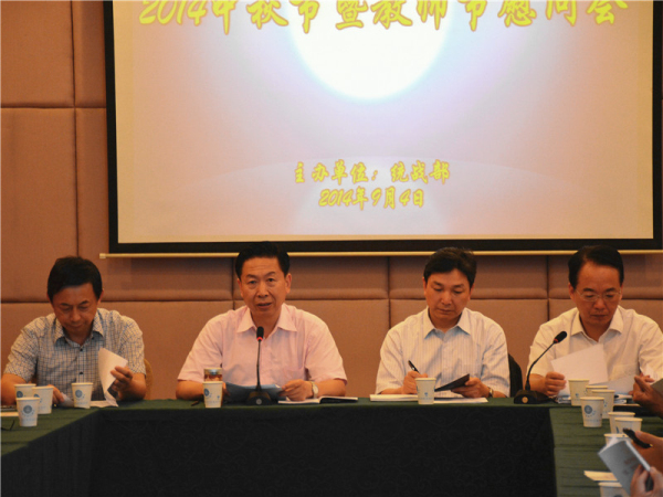 9月4日下午,我校在金杏楼会议室召开2014年统一战线中秋节暨教师节慰问会。学校各民主党派负责人、各级人大代表、政协委员、无党派代表人士、省文史馆员、归侨、侨眷、三胞眷属代表欢聚一堂,共话学校的建设与发展。校党委陈涤平书记、张策华副书记、程革副校长、孙志广副校长及学校党办、统战部、宣传部负责人出席了慰问会。慰问会由程革副校长主持。