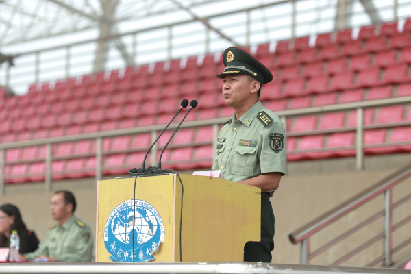 随后解放军理工大学国防工程学院学员大队政委范忠东上校向同学们强调了国防教育的重要性,充分肯定了大学生军训的意义,鼓励同学们要以高标准、高质量的要求完成训练任务,为今后的学习、工作、生活奠定良好的综合素质。