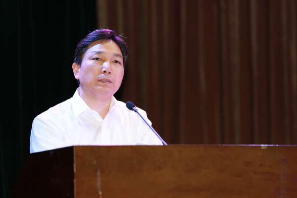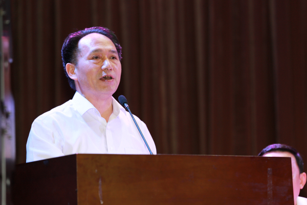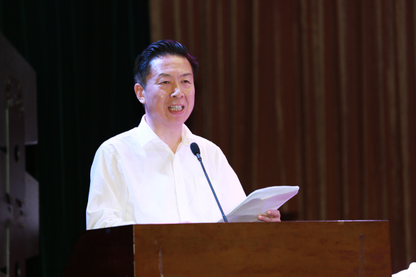 胡刚校长代表学校向全校师生医护员工致以节日的问候,提出要让包括新进教职工在内的广大教职员工平等共享教师节的温馨,并向获得表彰的教师表示热烈的祝贺,他号召全校上下以方泰惠、王明艳同志为榜样,树立正确的从教观和高尚的职业道德,爱岗敬业、情系师生,学为人师、行为世范,争做人民满意的好教师。胡校长在会上系统回顾了一学年来学校工作取得的新成就,认真总结了学校前进发展取得的新成绩,深刻分析了面临的形势,提出了人才强校工作的总体思路和主要任务,一是要进一步强化人才工作的战略地位,二是要稳步实施促进教师发展的体制机制改革,关爱教师成长、提高教师生活待遇,三是要牢固树立教学的中心地位。同时他对广大教师发展提出了殷切希望,他指出,今年10月15日我校将迎来60华诞,全校上下应以更加饱满的工作热情,积极投身到各项改革事业中去,他勉励大家一要立爱校爱岗之情,积极参与学校改革发展,二要坚持立德树人,正确指引学生健康成长,三要立终身学习的观念,努力争求高深的学术造诣。