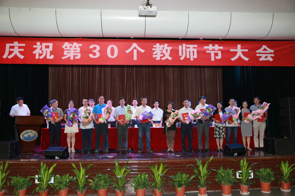 9月10日下午,我校庆祝第30个教师节暨表彰大会在仙林校区大学生活动中心小剧场隆重举行。校领导陈涤平、胡刚、张策华、段金廒、黄桂成、翟玉祥、程海波、程革、徐桂华、孙志广出席,会议由王长青副书记、副校长主持。