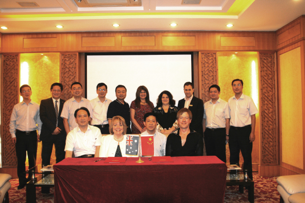 胡刚校长首先致辞,对代表团的来访表示热烈欢迎,并期待两校在既有中外合作办学公共卫生事业管理专业本科项目的基础之上,深入拓展科研合作。Jennelle Kyd副校长和Jeffery Smart副校长在发言中均高度评价两校教育合作项目所取得的丰硕成绩,衷心希望双方在老年病学、医学信息学等领域促进人员往来和科研协作。随后,为响应教育部《国际合作联合实验室计划》,双方在前期充分沟通的基础上,共同签署了科技合作谅解备忘录。