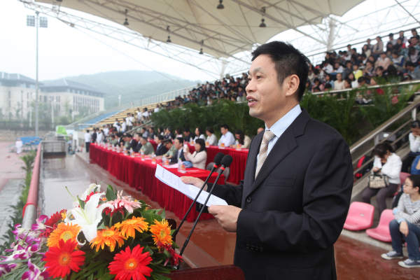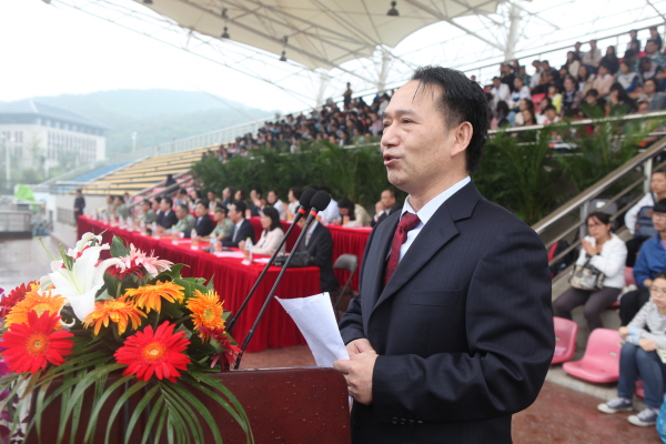 黄桂成副校长宣读《关于表彰2014级新生军训先进集体、先进个人的决定》