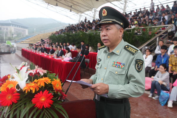 随后,解放军理工大学国防工程学院副政委沈亚健大校发表讲话,他向同学们阐述了军训的重要意义,期望广大新生能够始终发扬军训中艰苦奋斗、吃苦耐劳的精神,关注国防建设,为国家发展贡献力量。