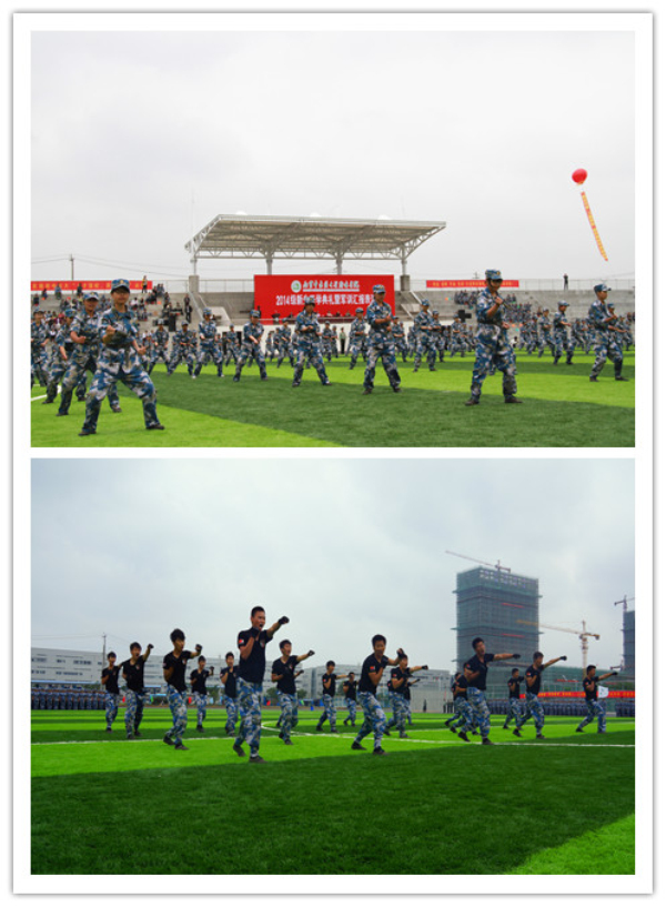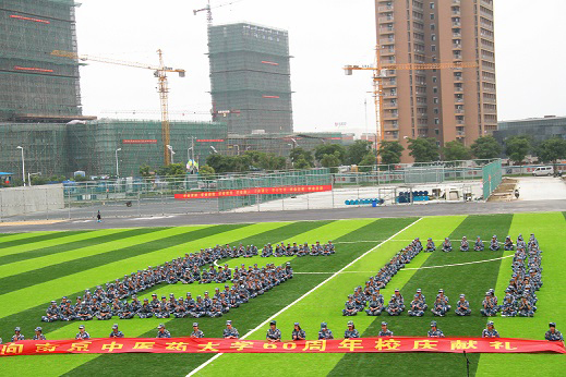 此次汇演的军事训练表演科目为擒敌拳、军体拳和匕首操。参演新生用他们矫健的身姿和顽强的精神展现了翰林学子的青春风采,汇演最后打出了“向南京中医药大学六十周年致敬”的标语,两百多名同学组成了一个巨大的数字“60”,赢得了在场师生的阵阵掌声。