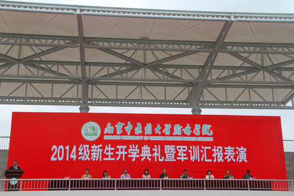 9月30日上午,翰林学院2014级新生开学典礼暨军训汇报表演在学院操场隆重举行。南京中医药大学领导、泰州市医药高新区领导、解放军理工大学野战工程学院首长、翰林学院党政领导、泰州中医院领导等在主席台就坐。学院全体教师、2014级本科新生出席活动。开学典礼暨军训汇报表演由院党委书记唐传俭主持。