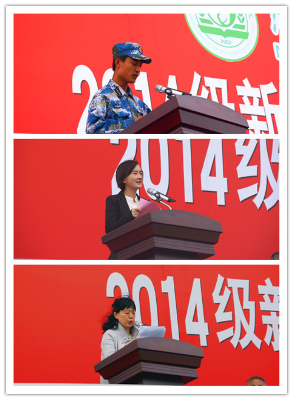 开学典礼在军训汇报表演结束后举行。翰林学院院长沈大庆在开学典礼致辞中,代表学院全体师生员工向2014级新同学表示了热烈的欢迎,他要求广大新生在大学期间要做到三点:一、立德修身,学会做人,打好人生的地基;二,要修学为本,学会学习,充当学习主体;三,要志存高远,脚踏实地,把握好人生。