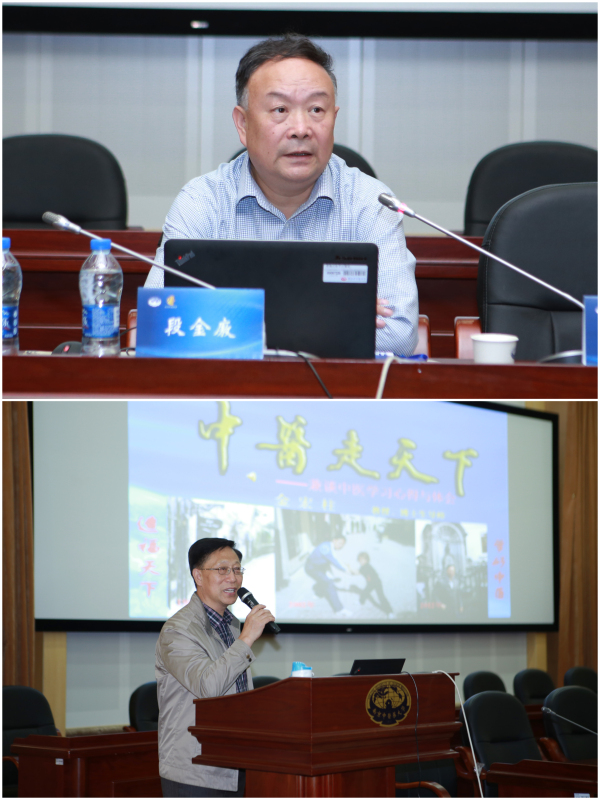 在随后的大会交流中。段金厫副校长围绕药性的现代认知与中药配伍禁忌探讨这一主题,深入浅出的和参会人员交流中药药性的形成与相关科学问题,以及基于药性的中药配伍禁忌研究,讲解科研思路和科研方法,为研究生和博士后指引科研工作的方向。金宏柱教授以其经历为主线,与参会人员分享自己在世界各国的行医经历,向学生们传授学习实践中医的心得。