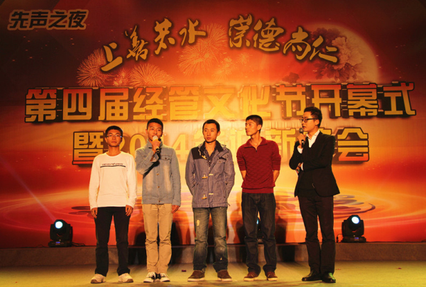 霁夜中灯火阑珊,唯有此处花灯璀璨。2014年10月24日晚,经贸管理学院“上善若水·崇德尚仁”第四届文化节开幕式暨2014年迎新晚会在逸夫广场华彩上演。校党委宣传部、校长办公室及学院领导莅临晚会现场,新生班级辅导员和全体2014级学生参与了晚会。