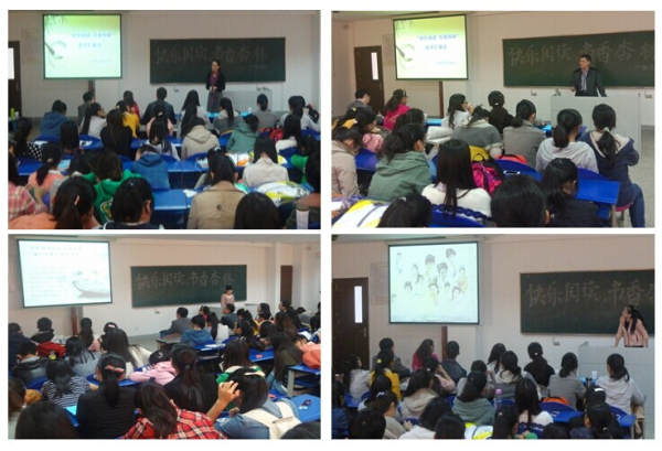 护理学院高度重视培养全院同学良好的读书习惯,倡导每个班级每学期至少举办一次读书活动,努力在广大同学中形成爱读书、善读书和读好书的良好氛围。雅清书社积极响应学院要求,以“明德启智,博闻新知,以书会友,同读共进”为宗旨,引导和组织全院同学在广泛阅读基础上开展丰富多彩的读者见面会系列活动,形式包括:畅言论坛、名篇朗诵、观点辩论、主题演讲和话剧表演等。雅清书社积极倡导广大同学走进书香世界,在书海中领悟大师的智慧,感受大千世界的美妙,让心灵在书海中翱翔与升华,同时,为推进书香校园文化建设发挥积极作用。