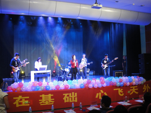 游戏过后,节目的内容更加丰富多彩。古筝独奏、肚皮舞、歌曲串烧、舞台剧……载歌载舞,表演者用乐器演奏心情,用音乐描绘未来,让同学们感受到视觉和听觉的双重冲击。最后由三位同学带来的吉他弹唱点燃了全场,尤其值得一提的是其中一位从南师大来的韩国朋友载敏,给在场的观众弹唱了一首《急救室》,真情的表演感染了所有人。