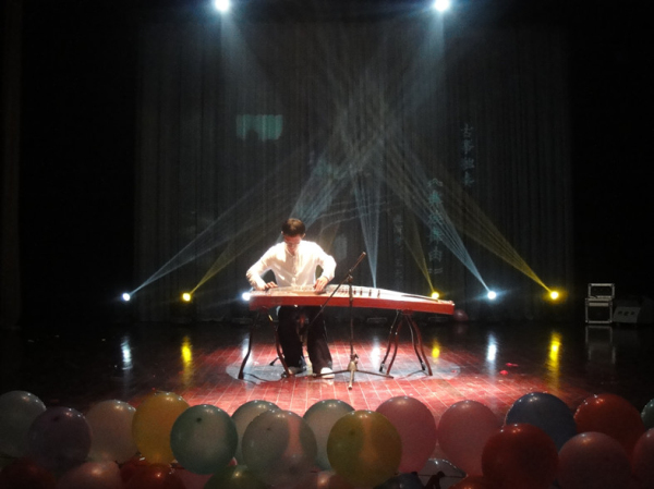 游戏过后,节目的内容更加丰富多彩。古筝独奏、肚皮舞、歌曲串烧、舞台剧……载歌载舞,表演者用乐器演奏心情,用音乐描绘未来,让同学们感受到视觉和听觉的双重冲击。最后由三位同学带来的吉他弹唱点燃了全场,尤其值得一提的是其中一位从南师大来的韩国朋友载敏,给在场的观众弹唱了一首《急救室》,真情的表演感染了所有人。