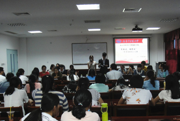 为迎接南京中医药大学60周年校庆,让同学们进一步了解南中医在这甲子岁月中的风雨路程,同时响应学校党委、团委的号召,深入学习马列主义、毛泽东思想、邓小平理论和“三个代表”重要思想,深入学习贯彻社会主义科学发展观,进一步掌握党的基本理论和基础知识,由基础医学院主办基础学生会承办的“学校史明党性”校史党史知识竞赛于9月28日17:30在丰盛楼519报告厅成功举办。出席此次竞赛的嘉宾有基础医学院学工办田乐老师、焦璇老师、陆家康老师,参加竞赛的队伍一共四支,分别来自学院大一到大三的不同年级。