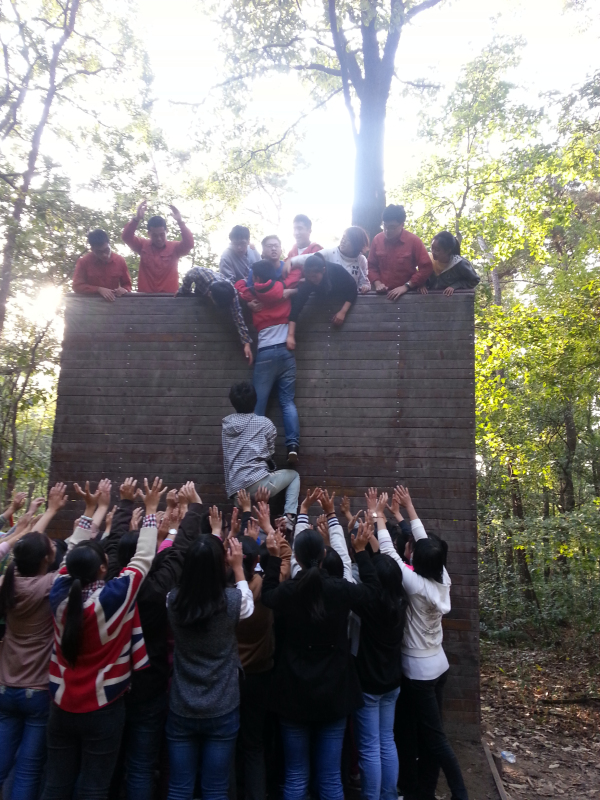 本次活动由破冰起航、信任背摔、穿越电网及逃生墙等组成。破冰起航起到暖场的效果,通过一个个快乐的游戏,迅速地拉近了彼此的距离。如其中一个自项目挑战五分钟需要很好的团队合作精神,小组之间的比赛增加了游戏的趣味性,大家你追我赶,好不热闹。信任背摔要求每个人轮流到1.5米背摔台上背向队友,双脚后跟1/3出台面,身体重心上移尽量垂直水平倒下去,下面的队员安全把他接住。此训练增加了团队内部的信任感,使团队成员更好地理解信任和承诺的重要性及力量。穿越电网活动是在全体队员面前悬挂一张"电网",网上的洞口大小不一,要求队员在规定时间内,从网的一边依次通过到达另一边。此训练强调整体协作与配合,资源的重要,好胜与莽撞都将遭遇淘汰,只有依靠团队的力量才能顺利完成任务。逃生墙要求所有成员在规定的时间内翻越一面高4.2米的光滑墙面。在此过程中,大家不能借助任何外界的工具,包括:衣服、皮带、绳子等。所能用的资源只有每个人的身体。通过胜利逃生后整个团队的凝聚力、合作精神以及队员间的感情往往会空前高涨,团队协作能力大大增强。