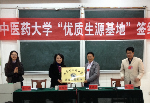 在优质生源基地签约与揭牌仪式上,徐桂华副校长和泗洪中学黄振宇校长签订了《优质生源基地》合作协议,共同为“南京中医药大学优质生源基地”揭牌。