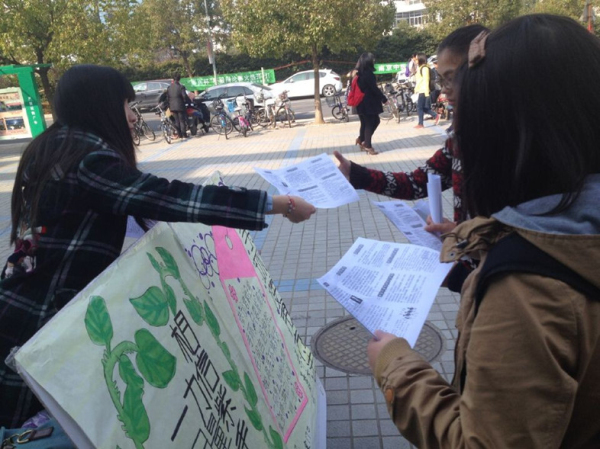 11月20日,基础医学院心理健康教育协会在第一食堂门口举办了“手戴紫手环,体验不抱怨”活动。本次活动旨在借小小手环的力量,清空大家心中的负能量,用微笑与正能量来代替生活中不时存在的抱怨,还生活一片晴空。