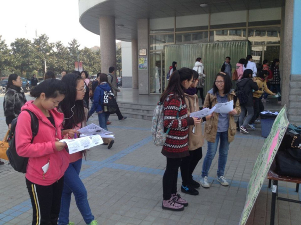 11月20日,基础医学院心理健康教育协会在第一食堂门口举办了“手戴紫手环,体验不抱怨”活动。本次活动旨在借小小手环的力量,清空大家心中的负能量,用微笑与正能量来代替生活中不时存在的抱怨,还生活一片晴空。