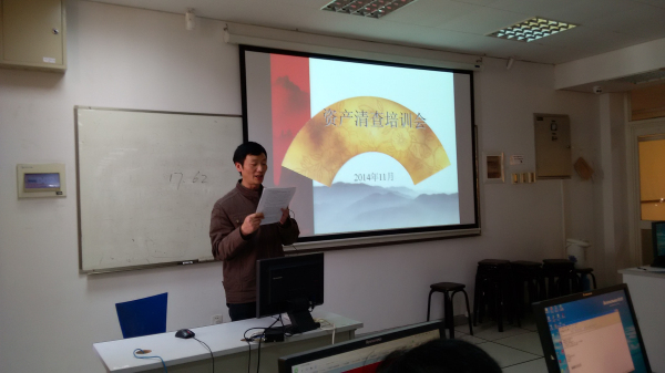 2014年11月21日下午,资产与设备管理处在仙林B6教学楼308机房举办了“2014年固定资产管理培训会”,各部门、单位、学院分管资产管理工作的领导、资产管理员、资产与设备管理处各科级干部、资产管理科全体成员等近百人参加了本次培训。