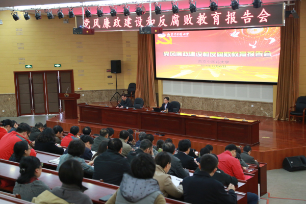 张书记报告有三个方面内容:一是认清新形势、把握新特点、明确新规定、领会新要求。张书记指出,当前,全国范围内党风廉政建设和反腐败工作取得明显成效。但是,滋生腐败的土壤依然存在,一些不正之风和腐败问题影响恶劣、亟待解决。比如,监管薄弱、权力集中、资金资源密集的领域和部门仍然是违纪违法的“重灾区”,大大小小的“一把手”腐败案件多发,一些案件涉案金额巨大、作案手段隐蔽,一些腐败案件与多种社会矛盾相互交织,一些基层部门和基层干部违纪违法案件增多,“小官巨贪”问题比较突出等等。反腐败的形势依然严峻复杂,党风廉政建设的任务依然艰巨。二是高校党风廉政建设和反腐败的现状和问题。张书记强调,新形势下高校预防腐败和遏制腐败蔓延的任务不断加重,已成为中央重视的问题。特别是基建工程、物资采购、招生录取、财务管理、自筹办学经费、校办产业、科研经费、学术造假、常规管理、违反中央八项规定等方面的案件多发,已成为社会关注的焦点。我们一定要有清醒的认识,进一步增强责任感和使命感,切实加强管理,确保把党风廉政建设的各项要求落到实处。三是推进高校党风廉政建设和反腐败的路径与举措。张书记要求,各级党员、干部要增强忧患意识和责任意识,认真学习贯彻党的十八大和十八届三中、四中全会精神,始终坚持党要管党、从严治党;始终坚持依法治校、规范管理;始终贯彻惩防并举、注重预防的方针,未雨绸缪,防患未然。张书记叮嘱同志们要怀抱一颗感恩之心,感恩父母、感恩社会、感恩母校南中医,号召全校师生医护员工同心同德、团结拼搏,为实现建成国际著名、国内一流的中医药大学的目标努力奋斗!