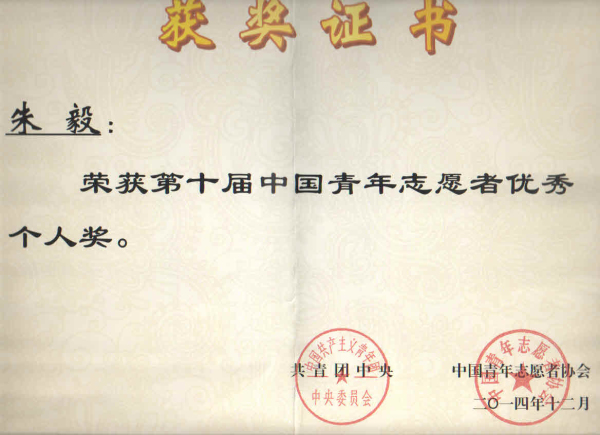 近日,在共青团中央、中国青年志愿者协会联合举办的第十届“中国青年志愿者优秀个人奖、组织奖、项目奖”评选表彰活动中,我校第二临床医学院康复教研室朱毅老师荣获“第十届中国青年志愿者优秀个人奖”,本次评选江苏仅有10人入选。