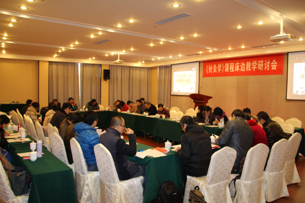 12月21日,《针灸学》课程床边教学研讨会在南京中医药大学杏苑宾馆多功能厅召开。参加研讨会的有承担《针灸学》床边教学课程的12家附属医院(第一附属医院、第三附属医院、附属江苏省中西医结合医院、附属南京市中西医结合医院、昆山附属医院、苏州附属医院、无锡附属医院、泰州附属医院、南通附属医院、盐城附属医院、徐州附属医院、连云港附属医院)的针灸科主任、教学秘书和部分课程老师,以及第二临床医学院顾一煌院长、张建斌副院长和针灸学教研室的老师。