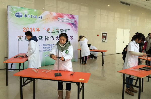 2014年12月23日下午,由南京中医药大学教务处、第二十届科技文化节组委会主办,药学院承办的 “爱上实验室”实验技能操作大赛决赛,在大学生活动中心圆满落幕。15名在前两轮比赛中脱颖而出的选手在本次比赛中进行激烈的较量。