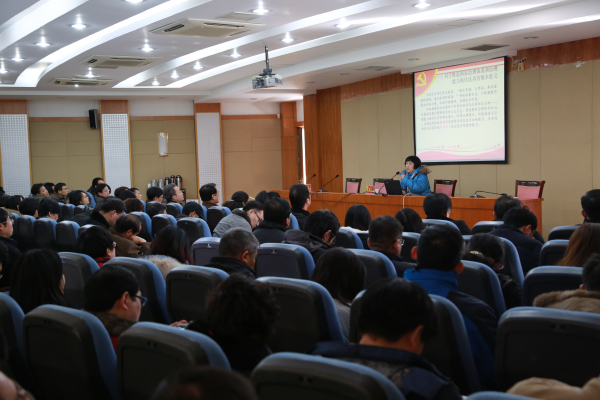 12月22日下午,党校特邀省委党校党史党建部主任董连翔教授在行政楼416会议室为全体中层干部,党校教员、督导员,两课教师及各学院学工办主任作了党的十八届四中全会精神辅导报告。在报告中,董教授就党的十八届四中全会召开的意义作了阐释,指出,此次全会的召开对于推进国家治理体系和治理能力现代化,对于提高党的执政能力和执政水平、长期执政,对于科学把握依法治国的政治定位具有根本意义。她重点就如何正确把握《决定》的精神实质和主要内涵作了解读,指出《决定》提出了依法治国的总目标,强调了坚持党的领导与社会主义法治的一致性,明确了全面推进依法治国的重大任务,各级领导干部要牢记“法律红线不可逾越,法律底线不可触碰。”董教授的报告既有对十八届四中全会《决定》的理性解读,也有对具体问题的深入分析,充分显示出了她深厚的理论学养和回应现实问题的重大关切,精彩的报告博得了全场阵阵掌声。