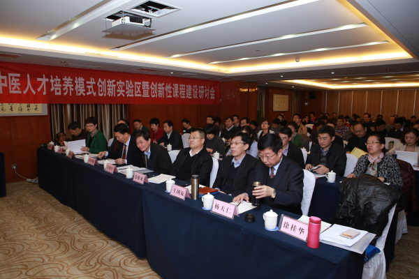 12月27日,由教育部中医学类专业教学指导委员会主办、我校承办的“中医人才培养模式创新实验区暨创新性课程建设研讨会”在南京顺利召开,来自全国几十所高等中医药院校及相关附属医院、中国中医药出版社的领导、专家和学者近百人参加了此次会议,会议开幕式由我校徐桂华副校长主持。
