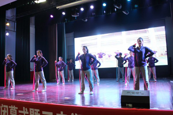 随着主持人宣布第二十一届青年文化艺术节圆满闭幕,三走塑形健身发布式拉开大幕。学校健美操队的同学们为所有现场观众奉献了一场精彩的塑形健美操表演。这两套塑形健美操是由校团委联合南京体育学院专业团队精心创作,根据我校师生体质状况,将传统功法和现代健美操完美融合,展现了我校深厚的中医文化底蕴和杏林学子的青春活力。