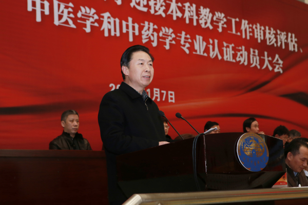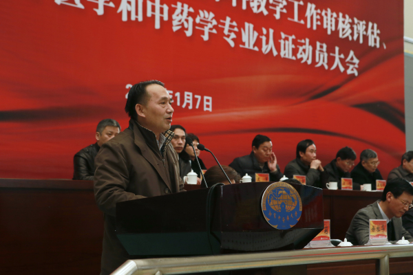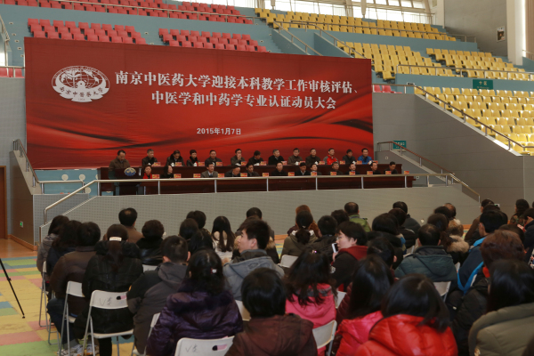 2015年1月7日下午,我校迎接本科教学工作审核评估及中医学、中药学专业认证动员大会在体育馆隆重召开,全体教职员工、直属附属医院代表、学生代表出席了大会。会议由黄桂成副校长主持。