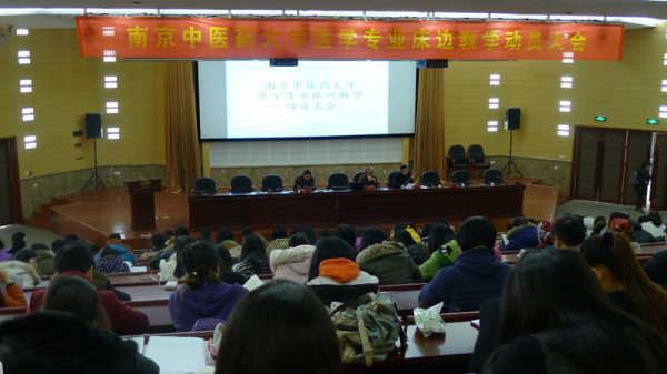 2015年1月19日,基础医学院、第一临床医学院在丰盛楼报告厅成功举办2012级医学专业床边教学动员大会。两个学院领导、学工办老师、2012级中医学、中西医临床医学专业共计467同学参加了大会,大会由基础医学院孙新新副书记、副院长主持。